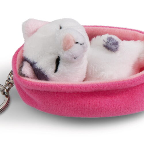 NICI Schlüsselanhänger – Sleeping Pets Katze dreifarbig – 8 cm