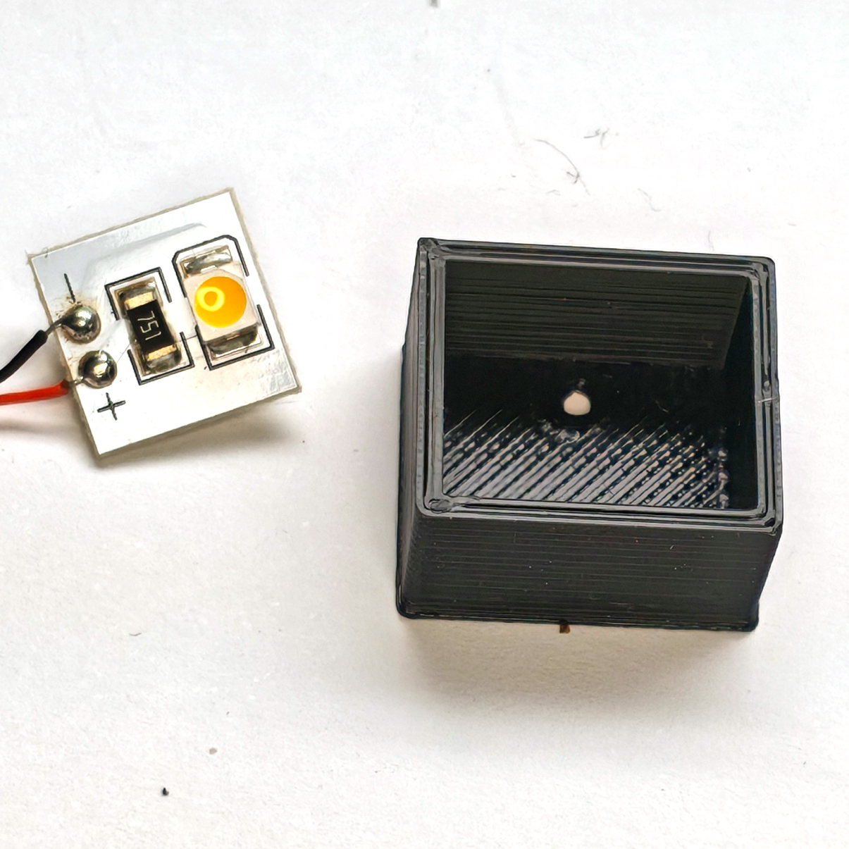 * LED muss noch in das Gehäuse verklebt werden.