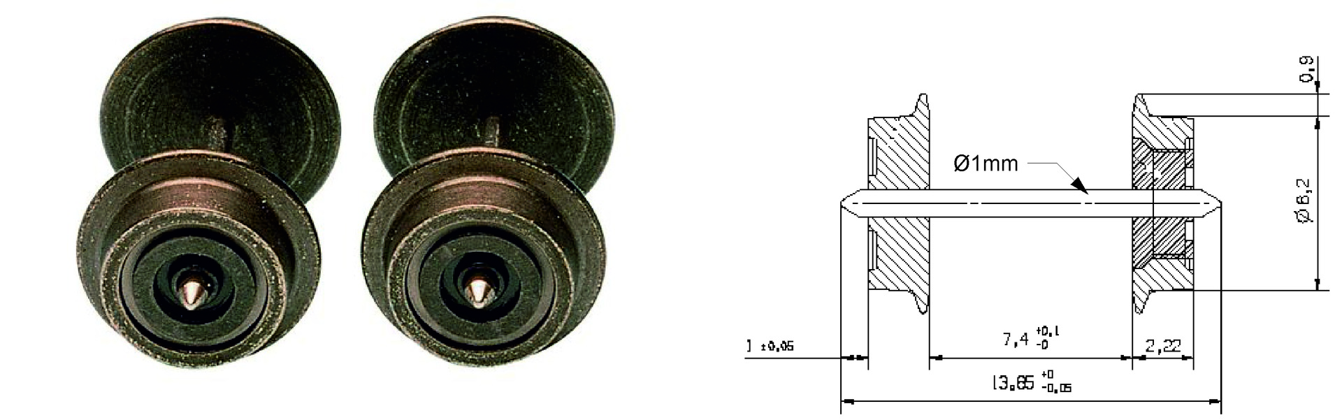 Radsatz – 6,20 mm einseitig Isoliert (1 Stk.)